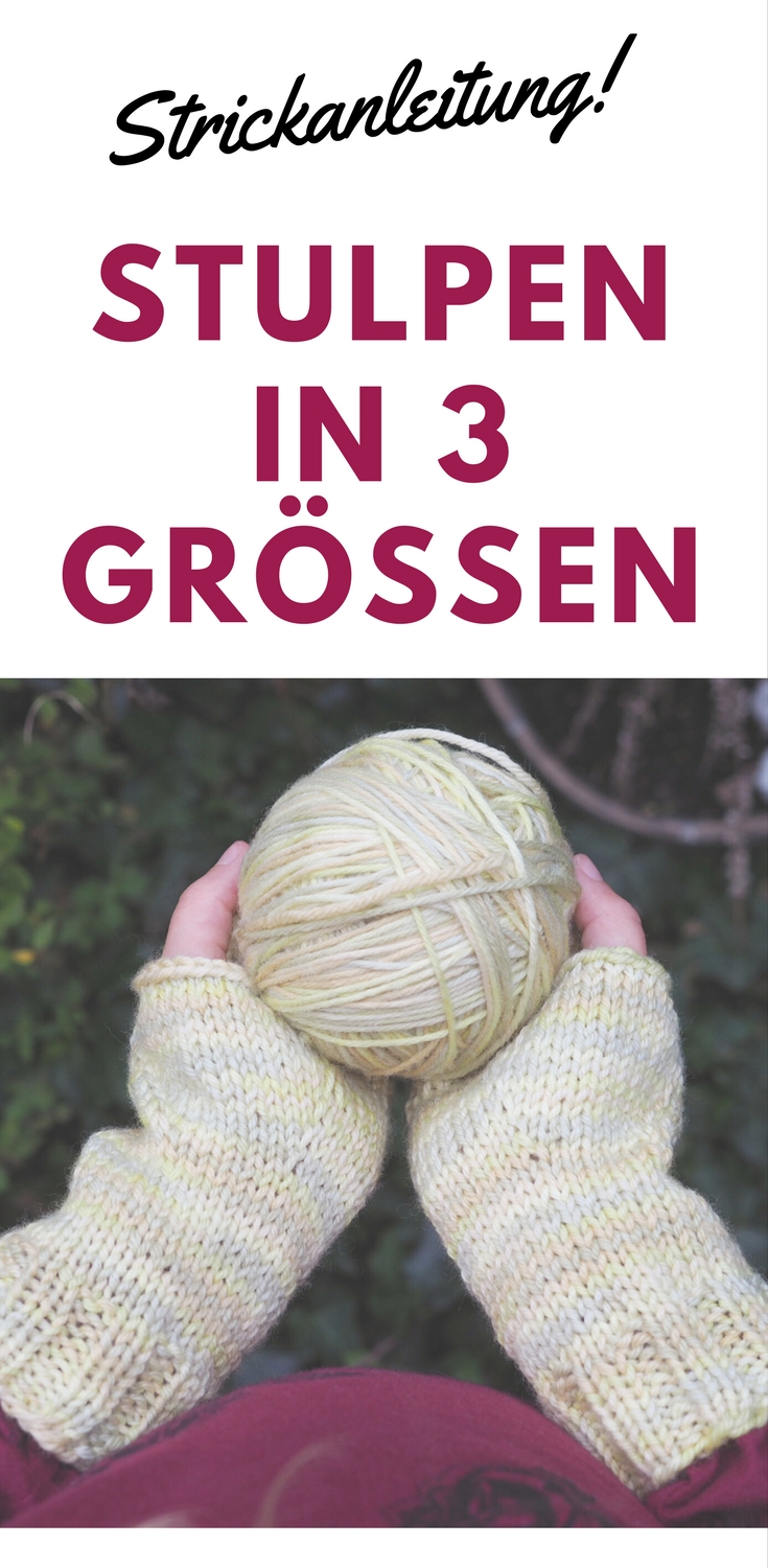 Das Kind liebt ein ganz bestimmtes Handyspiel, bei dem man draußen herumläuft und kleine Viecher sammeln muss. Langsam froren uns dabei die Hände fast ein. Deshalb mussten dicke, warme Handschuhe her, bei denen die Finger freigelegt sind um das Smartphone zu bedienen. Rucki-zucki waren diese einfachen fingerlosen Handschuhe geboren. Sie kommen in 3 Größen daher: Kinder (Frauen/Männer). Gestrickt habe ich mit einem tollen Merinogarn von The Yarn Collective. Es sollte aber auch jedes andere „worsted“ Garn passen.